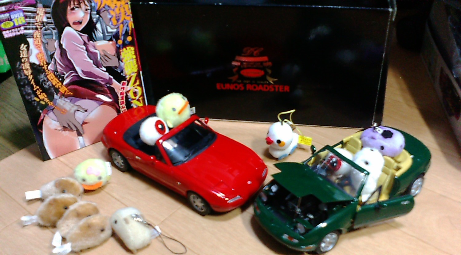 以前日記に書いた京商のロードスター手に入れることが出来ましたぁー(写真右)